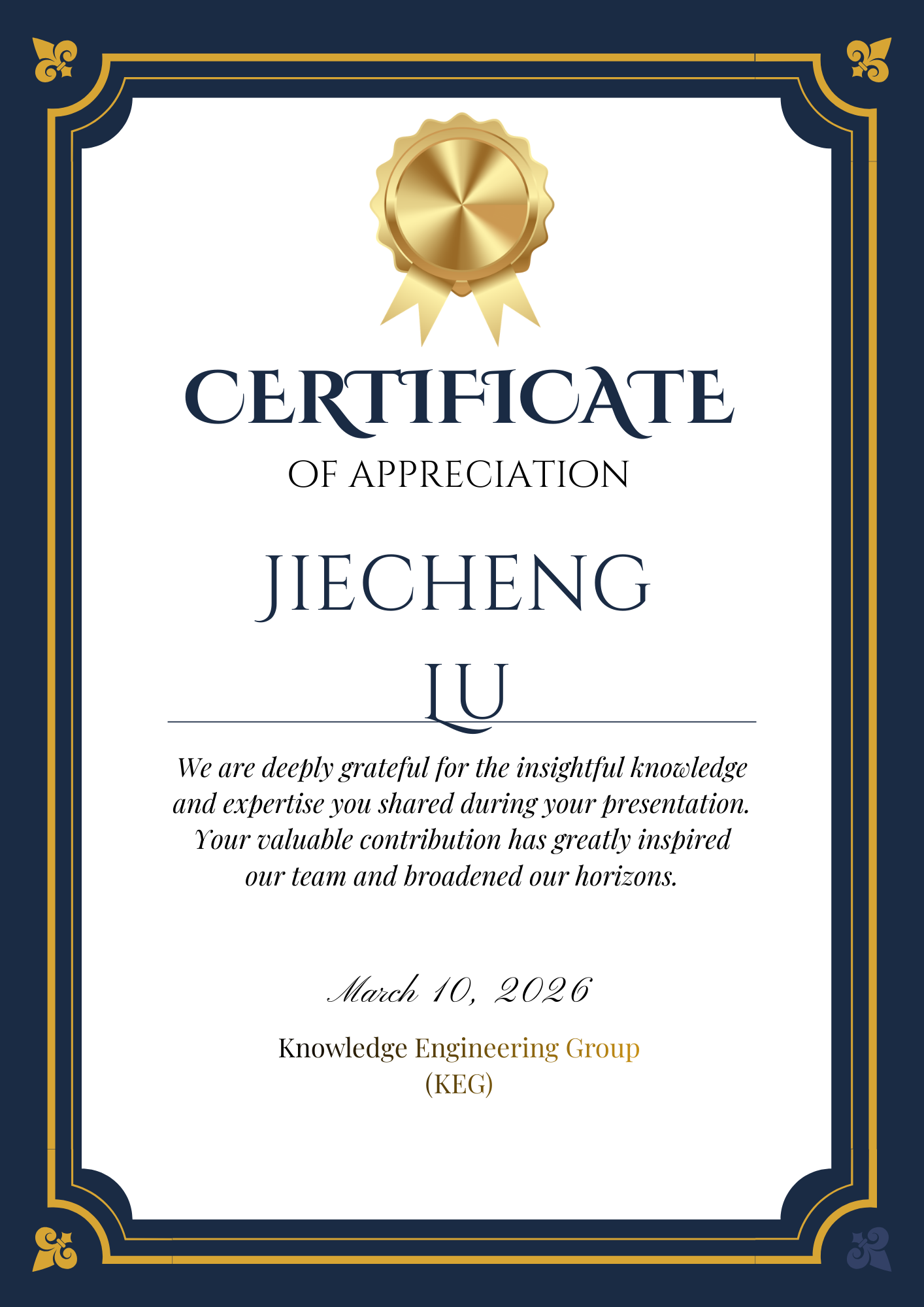 This invited online talk was hosted by the Knowledge Engineering Group at Tsinghua University on March 10, 2026 (Beijing Time).